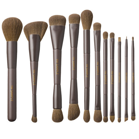 مجموعة فرش مكياج بني بشعار مخصص 11-فرش أحمر خدود بودرة شعر نباتي برأسين مجموعة فرش خافي عيوب ظلال العيون بشعار خاص